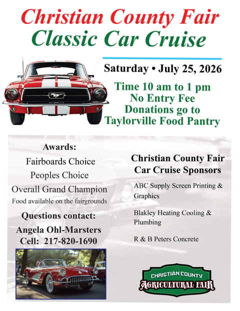 Classic Car Cruise + Add to Google Calendar + iCal / Outlook export Date Jul 25 2026 Time 10:00 AM - 1:00 PM Category Event Sponsors ABC Supply Screen Printing & Graphics Blakley Heating Cooling & Plumbing R & B Peter's Construction Share this event